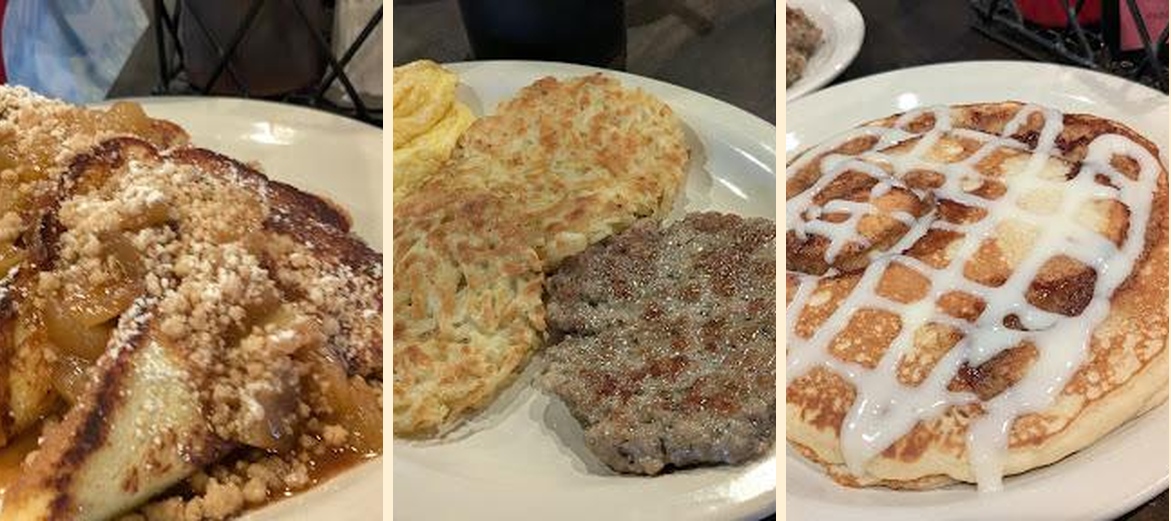 Definitely try the Jr. Cinnamon Bun Griddle Cake for breakfast. For lunch, the Mmm Mac & Cheese is popular. If you're a burger lover, the Bistro Burger won't disappoint.
